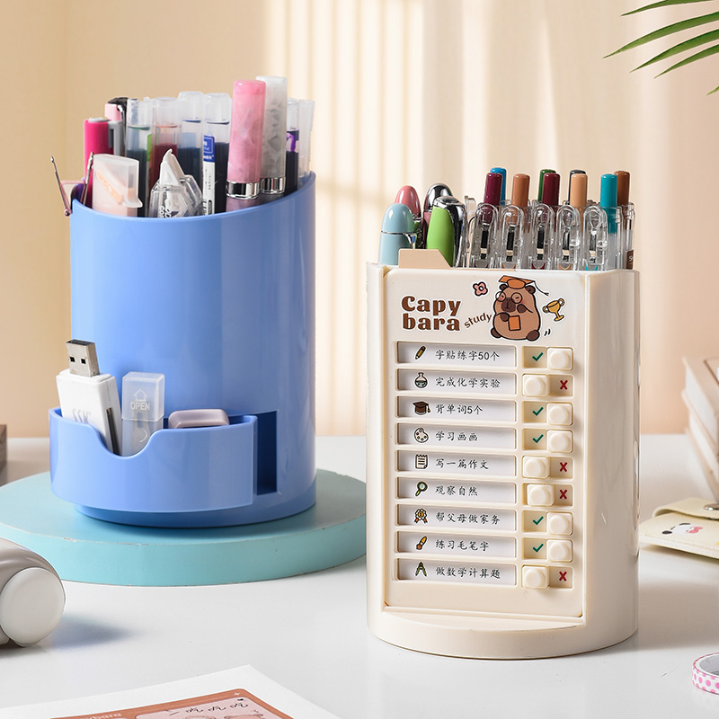 自律打卡旋转笔筒360度多功能收纳容量学生卡皮巴拉桌面笔盒打卡器创意高颜值儿童男女孩文具笔桶学习计划