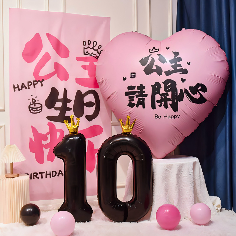 女孩十周岁爱心气球条幅生日快乐装饰背景挂布儿童场景布置数字