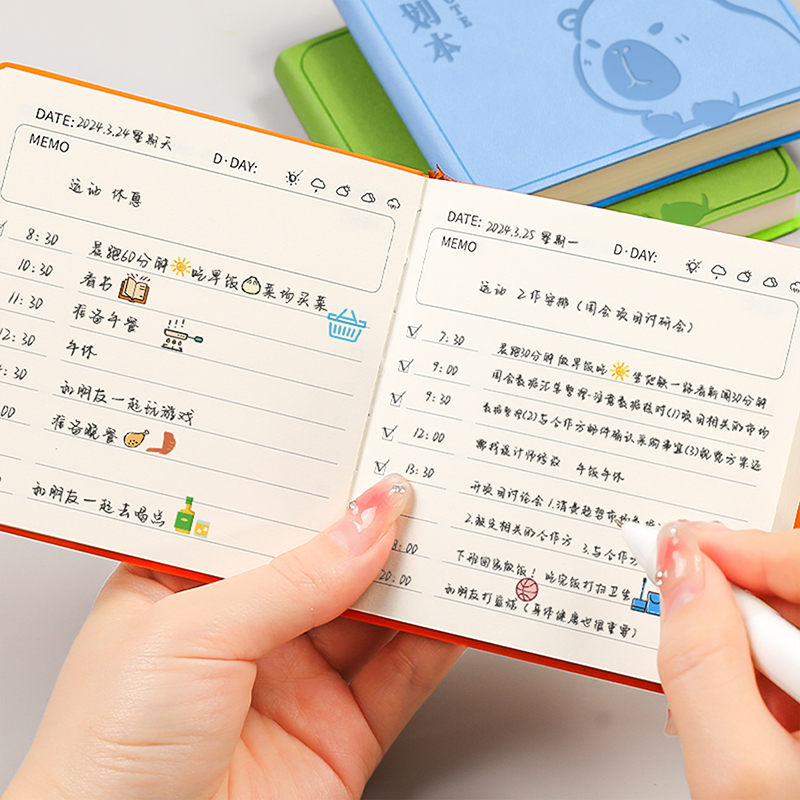 每日计划本小学生自律打卡笔记本卡皮巴拉高颜值暑假做计划时间管理随身便携日记本加厚皮面迷你方形计划本子