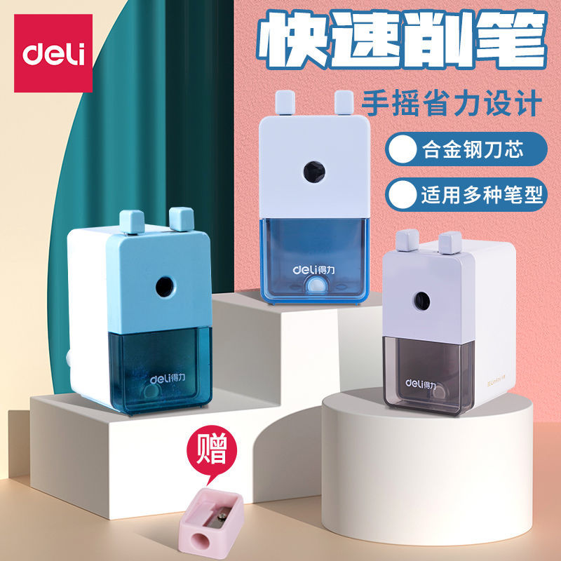 得力deli手摇转笔刀手动卷笔刀削笔器笔刨小学生专用铅笔刨笔机刀手动
