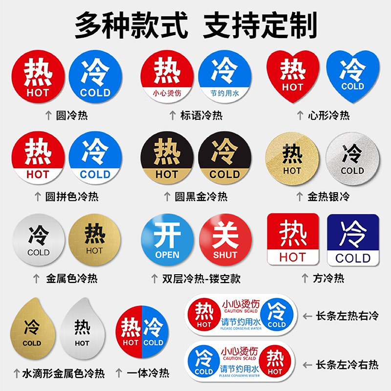 高档酒店宾馆冷热水标识贴提示牌水龙头冷热标示贴家用浴室创意小标牌亚克力卫生间冷热水开关冷热标识标示贴