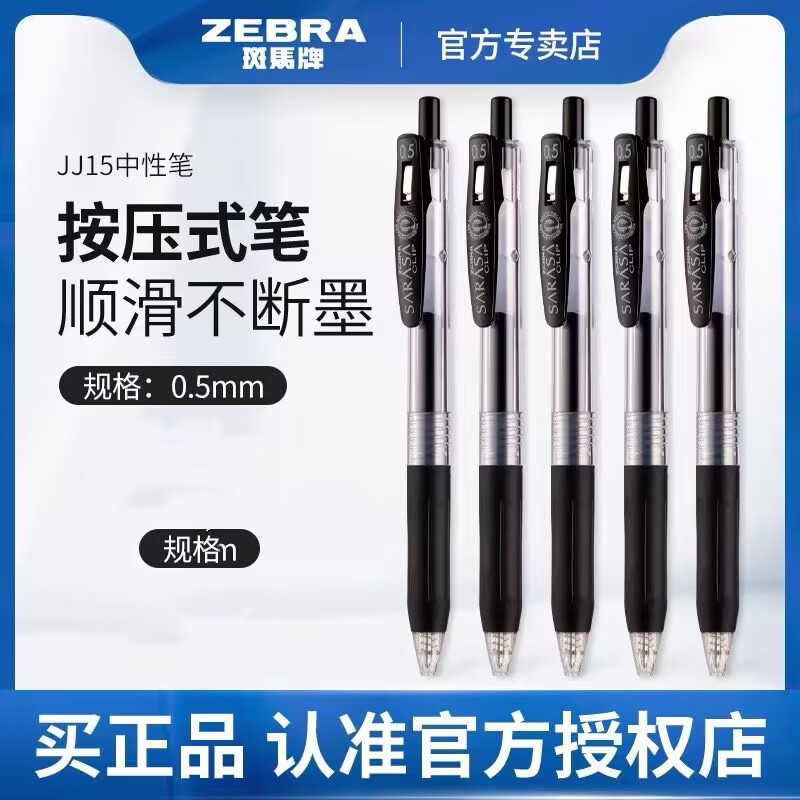 ZEBRA斑马官方旗舰店官网中性笔JJ15斑马黑笔笔记水笔0.5套装学霸刷题笔中小学生用JJ77按动式笔sarasa圆珠笔