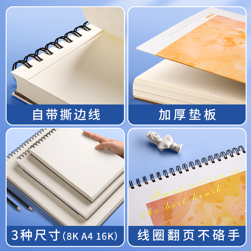 a4加厚素描本美术生专用速写本8K素描纸手绘画册本空白图画白纸画画本随身写生纸动漫马克笔16K初学者高颜值