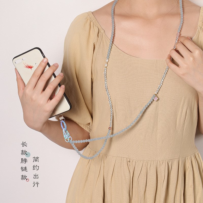 清新文艺蓝玉髓长款斜p跨可背手机挂绳琉璃串珠防丢小众新中式挂