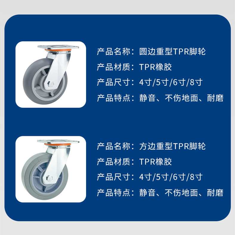 重型脚轮方边TPR静音轮4寸5寸6寸8寸机械设备承重轮平板车脚轮
