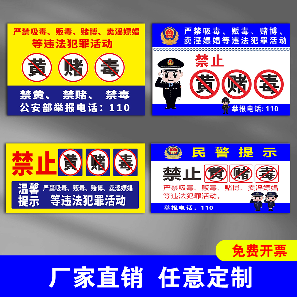 禁止黄赌毒标识牌酒店宾馆KTV酒吧禁毒禁赌禁止赌博三禁警示牌酒店客房温馨提示未成人禁止入内