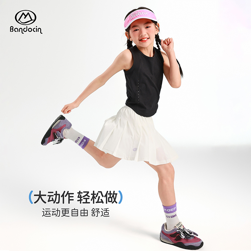 半度闲女童薄款运动背心上衣洋气2025新款儿童夏季速干衣t恤潮T