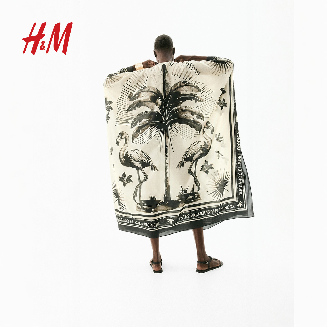 HM女装花卉连衣裙2025年夏季新款宽松度假风卡夫坦连身裙1291058
