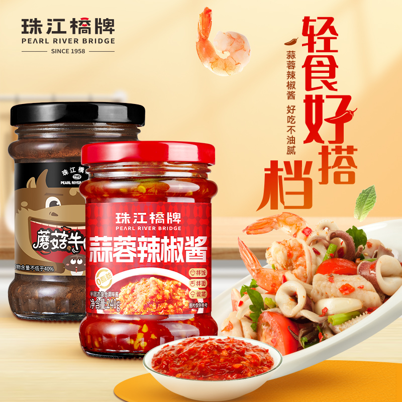 珠江桥牌蒜蓉辣椒酱酱料广东蒜蓉辣酱拌饭酱下饭菜肉酱拌面调料
