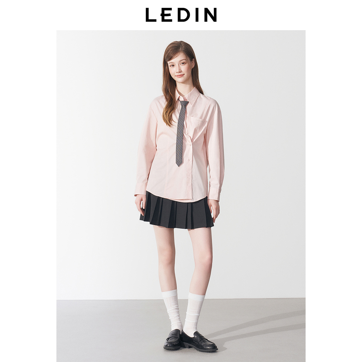 乐町韩系通勤纯棉领带衬衫2025春季新款学院风字母刺绣廓形上衣