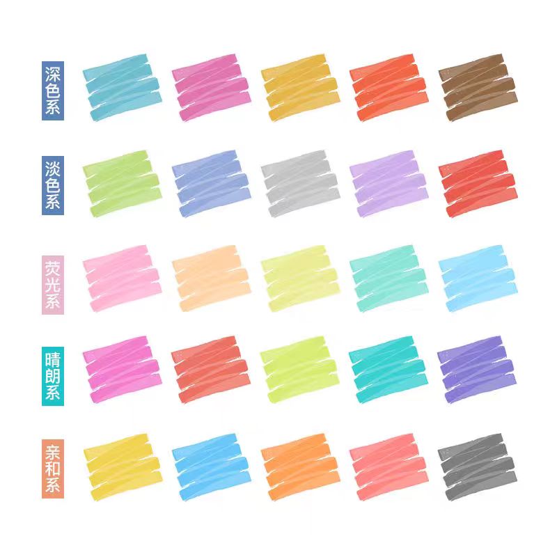 点石三角杆荧光笔12色记号笔简约学生划重点标记笔套装柔色手账笔