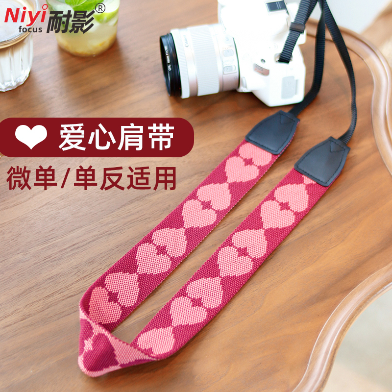 爱心相机背带复古肩带单反微单背带相机时尚摄影背带挂脖文艺可爱挂绳挂带适用于佳能拍立得索尼尼康富士