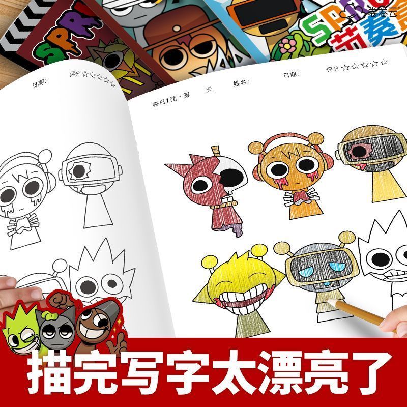 节奏盒子Sprunki描摹本全系列奥伦变异暗黑版儿童涂色画画册填色