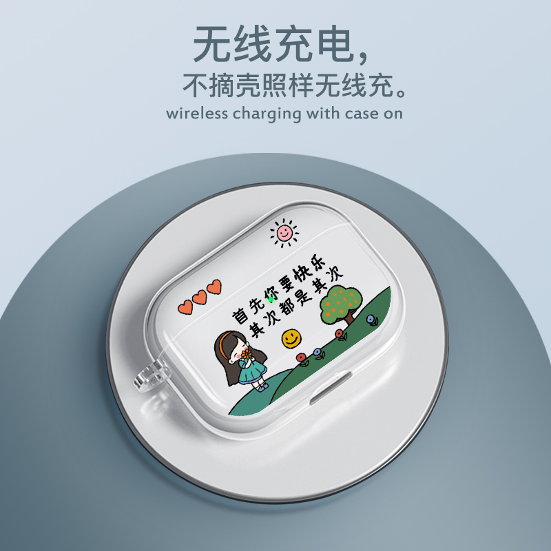 适用苹果耳机保护壳airpods4透明套airpod降噪版pro二代创意三四代首先你要快乐apple蓝牙外壳airpodspro2盒