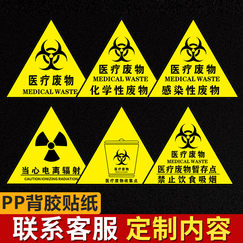 医疗废物标识贴医院垃圾桶分类标志危废弃暂存间点存放处提示禁止饮食严禁吸烟贴纸警示牌当心电离辐射指示牌