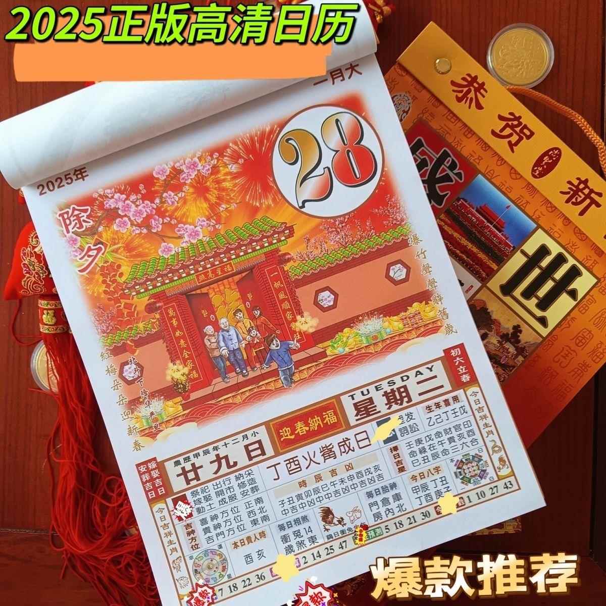 2025年日历挂历老黄历美食养生农历新款日历彩色日历一天一页手撕万年历年历大号家用挂墙黄历农历一天一张