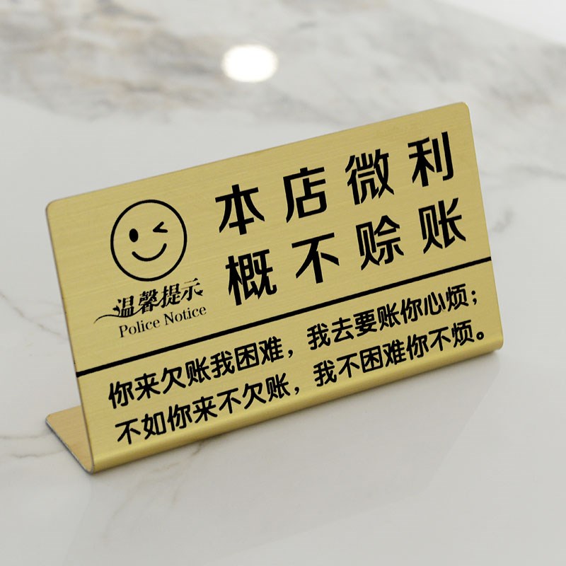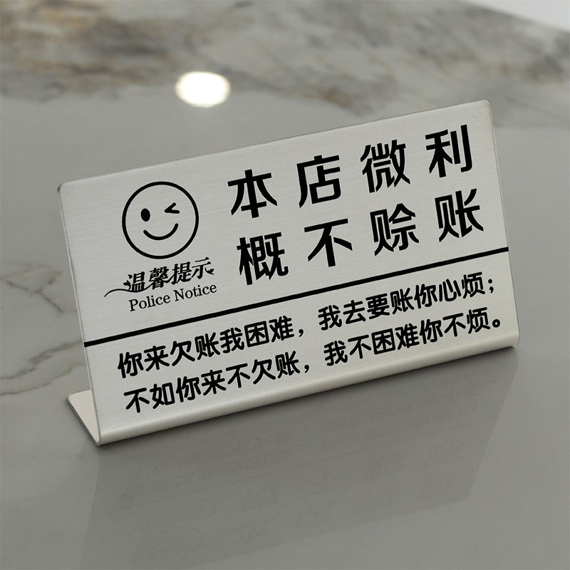 不锈钢标识牌概不赊账提示牌创意立牌谢绝欠款Q告示温馨指示牌台