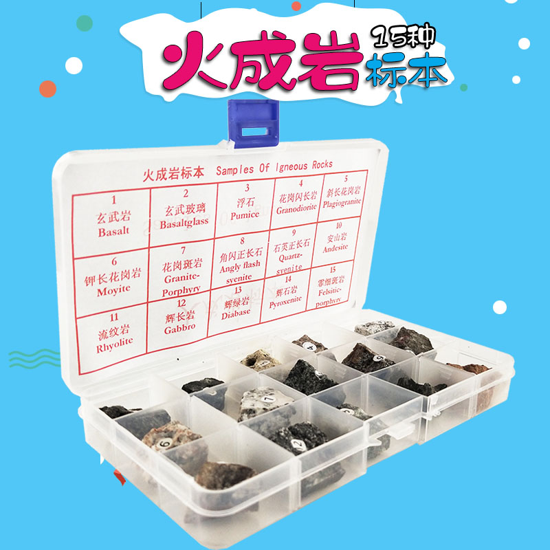 15种岩石标本 教学用 火成岩 沉积岩 变质岩 火山喷出岩浆岩 水成岩 三大类岩石教具 教学仪器