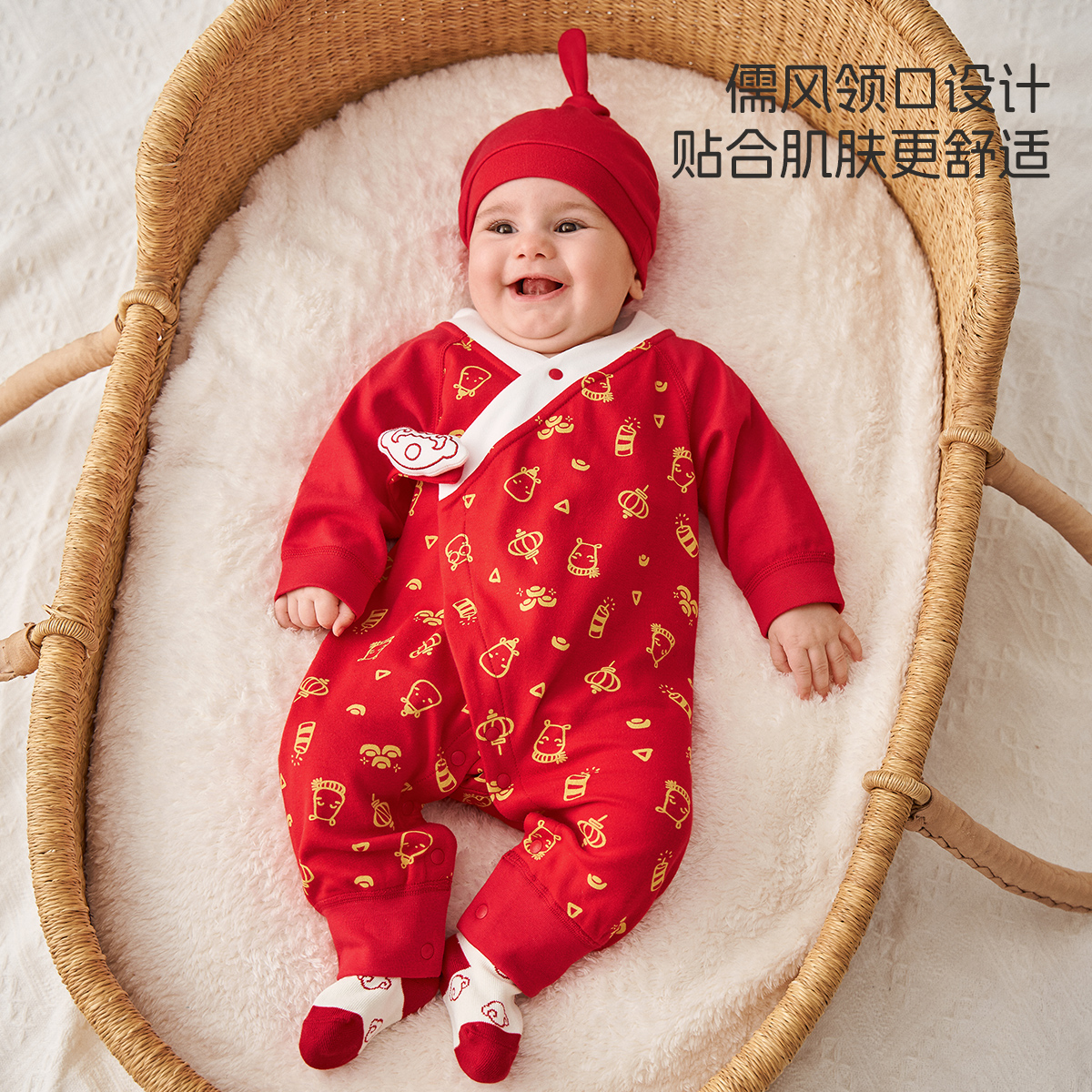 aqpa爱帕新生儿婴儿衣服龙宝宝新年红满月百天衣服连体衣哈衣爬服