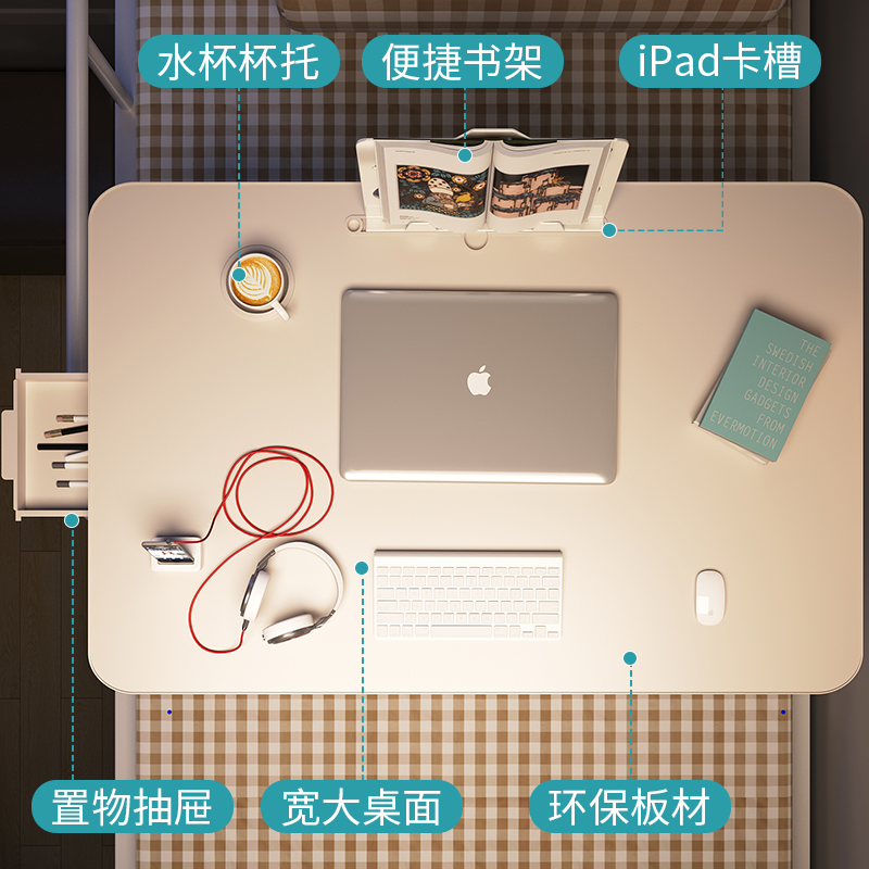 床上小桌子学习桌可升降折叠桌笔记本电脑桌支架宿舍学生上铺书桌儿童写字桌阅读桌家用炕桌卧室飘窗懒人桌板