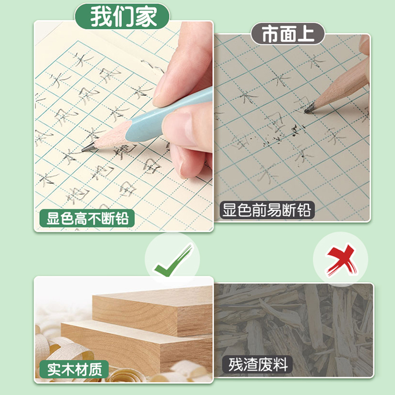 Nusign纽赛小绿杆黑木铅笔hb小学生专用一二年级学习用品正姿高颜值加粗铅芯无铅毒得力书写绘画矫姿素描初学