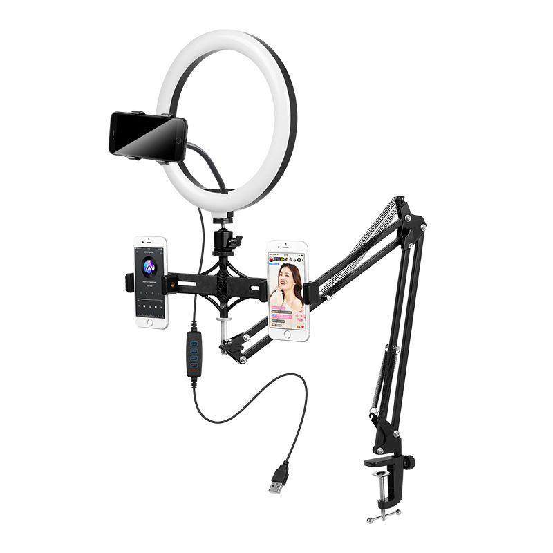 金属悬臂桌面台式防抖拍摄俯拍神器多功能直播视频手机补光灯支架