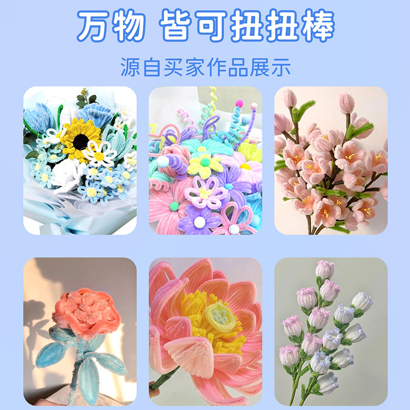 加密彩色金葱扭扭棒花束手工diy圣诞树材料包全套儿童毛条毛根特密毛毛条小雏菊向日葵郁金香百合巨型玫瑰花