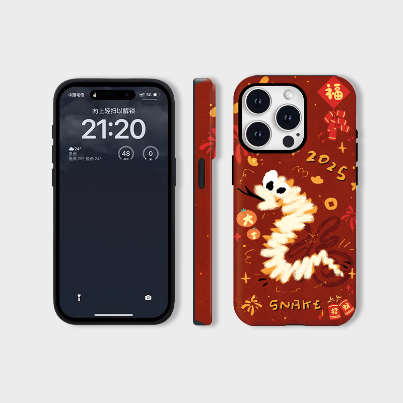蛇年快乐~适用iphone苹果16promax手机壳2025新年款15plus好运发财14新中式中国风13艺术ins风小米15全包防摔