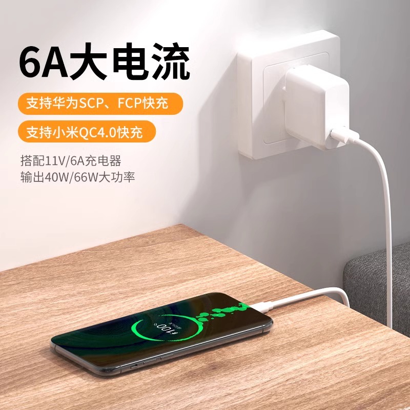 6A数据线超级快充usb充电线闪充适用于安卓华为荣耀vivo手机通用充电器线快充单头原梯形充电宝装正品加长加