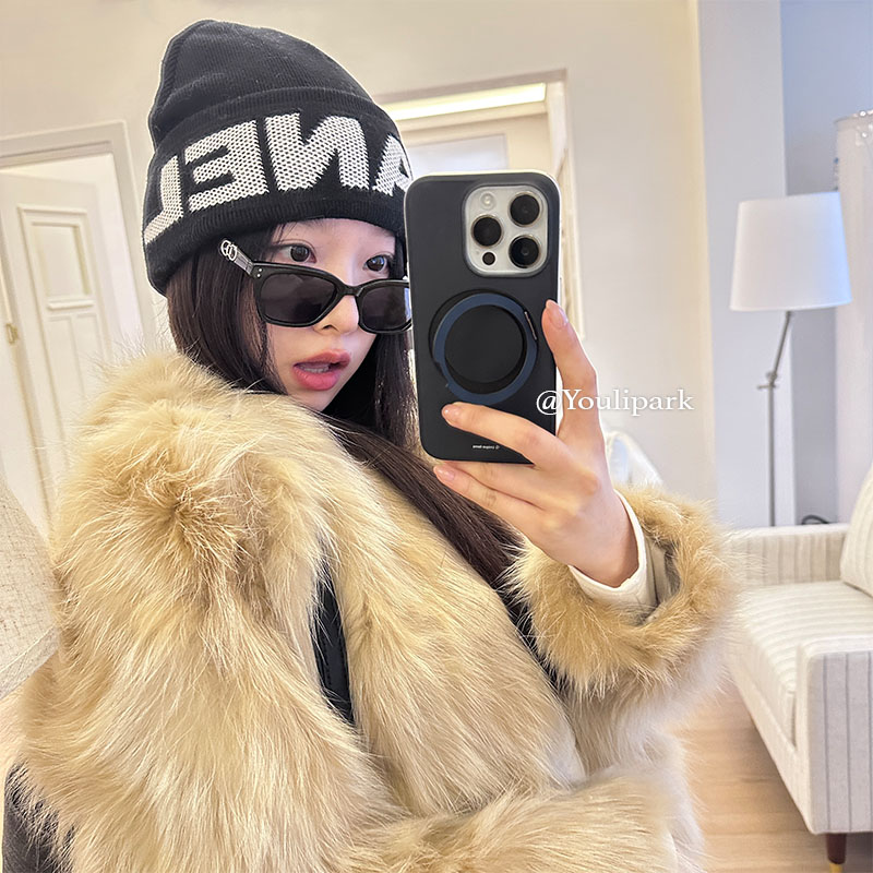 由里公园ins小众简约奶油纯色旋转磁吸支架15适用16pro苹果16ProMax手机壳iPhone16全包14新款14Promax保护套