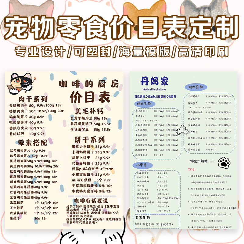宠物零食价目表定制澡美容价格表设计可爱朋友圈海报菜单定做