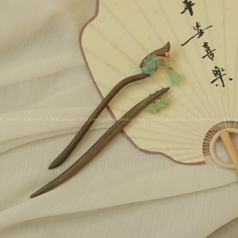 儿童新中式流苏盘发木簪子女2025新款高级感旗袍古风发吊坠荷花