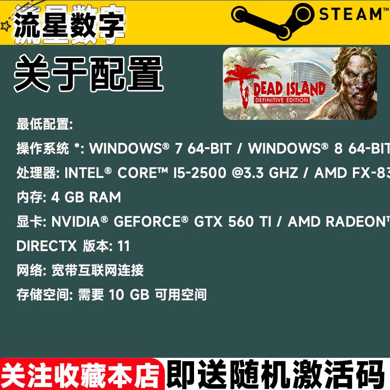 Steam正版国区KEY 死亡岛1 终极版 Dead Island 激活码CDKEY现货