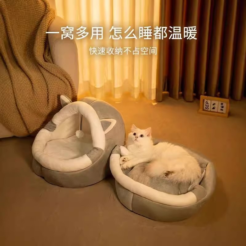 猫窝冬季保暖半封闭式可拆洗四季通用猫咪窝狗窝猫床猫屋幼猫窝垫