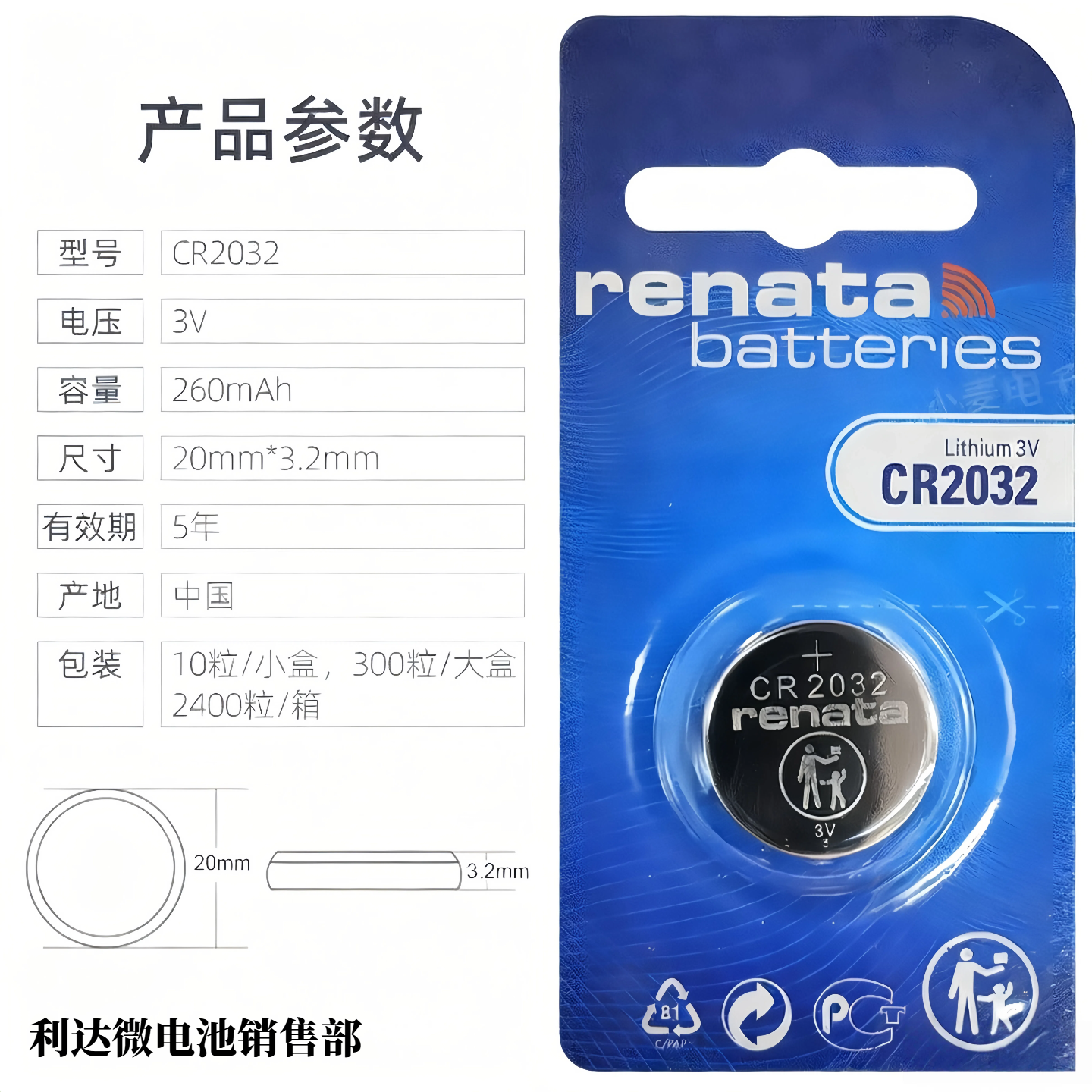 原装CR2032纽扣锂CR2430高容量低内阻3V电池原进口renata瑞士优惠