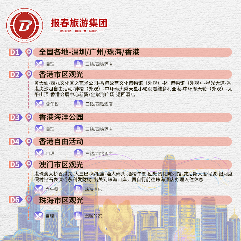 爸妈放心港澳旅游接机6天5晚跟团游香港旅游纯玩海洋公园珠海旅游