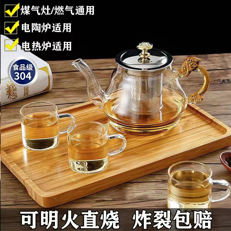 玻璃泡茶壶茶具套装家用水壶耐高温茶水分离煮茶壶器炭火明火加热