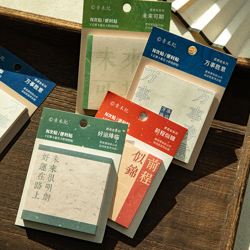 青禾纪丨愿君安便利贴便签本子有粘性可撕简约复古高级感古风治愈系高颜值学生索引贴书签标记贴便利贴小条