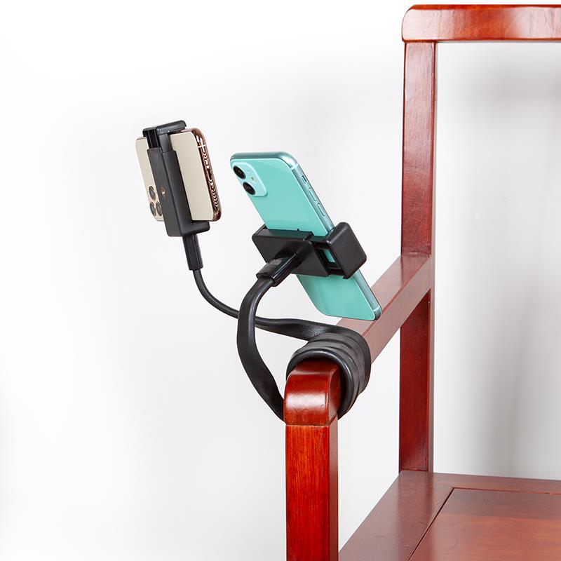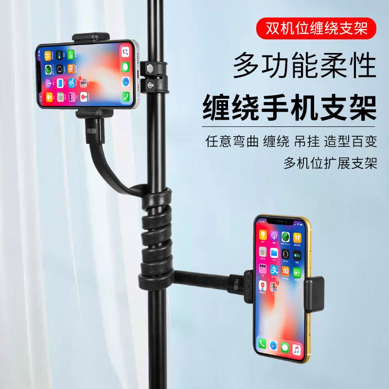 多功能手机直播支架双头1/4螺丝接口缠绕软管双机位扩展支撑架子