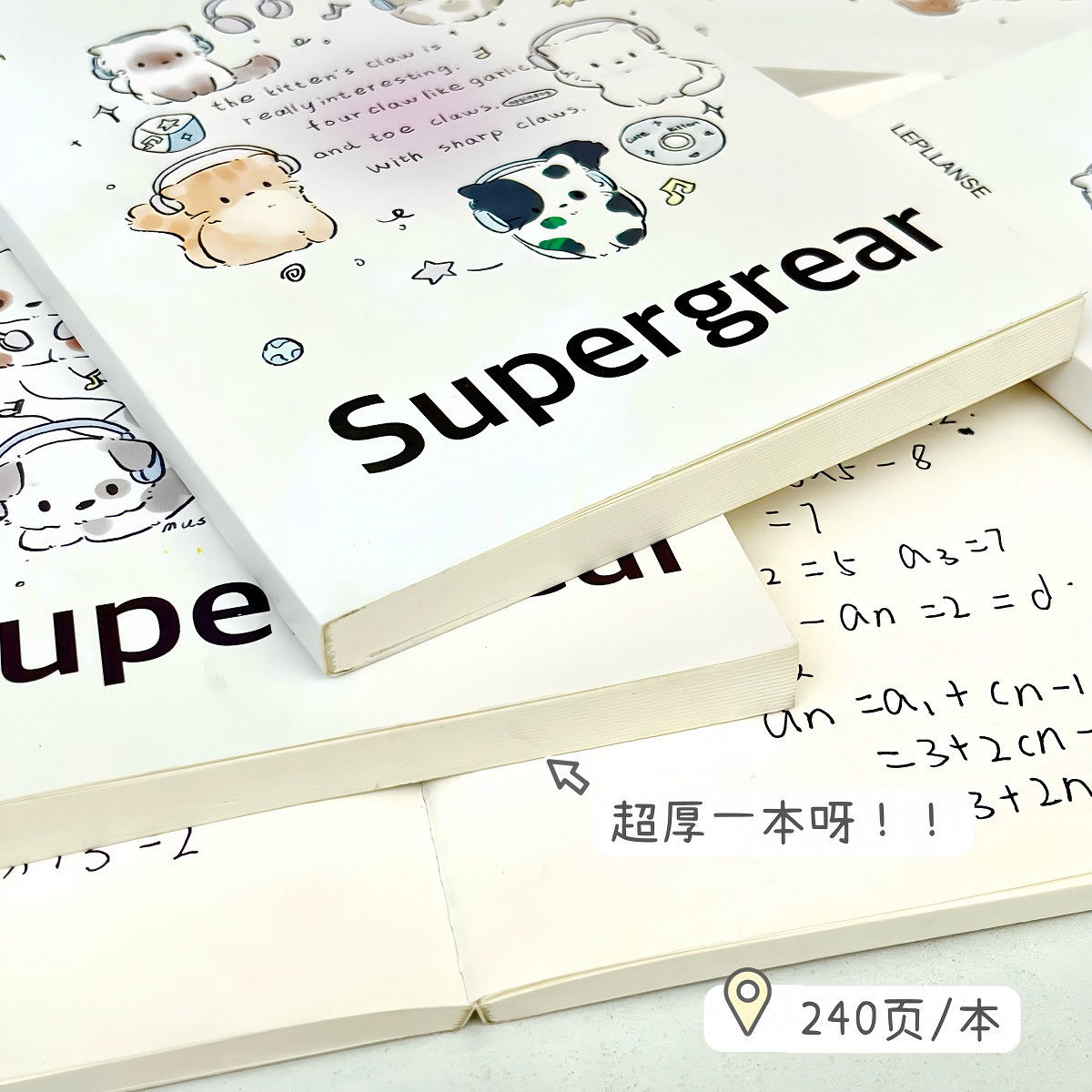 复古牛皮纸笔记本超厚空白本子加厚白纸本草稿本学习可平摊高颜值本记事本日记本a4a5小方格写作本大学生初中