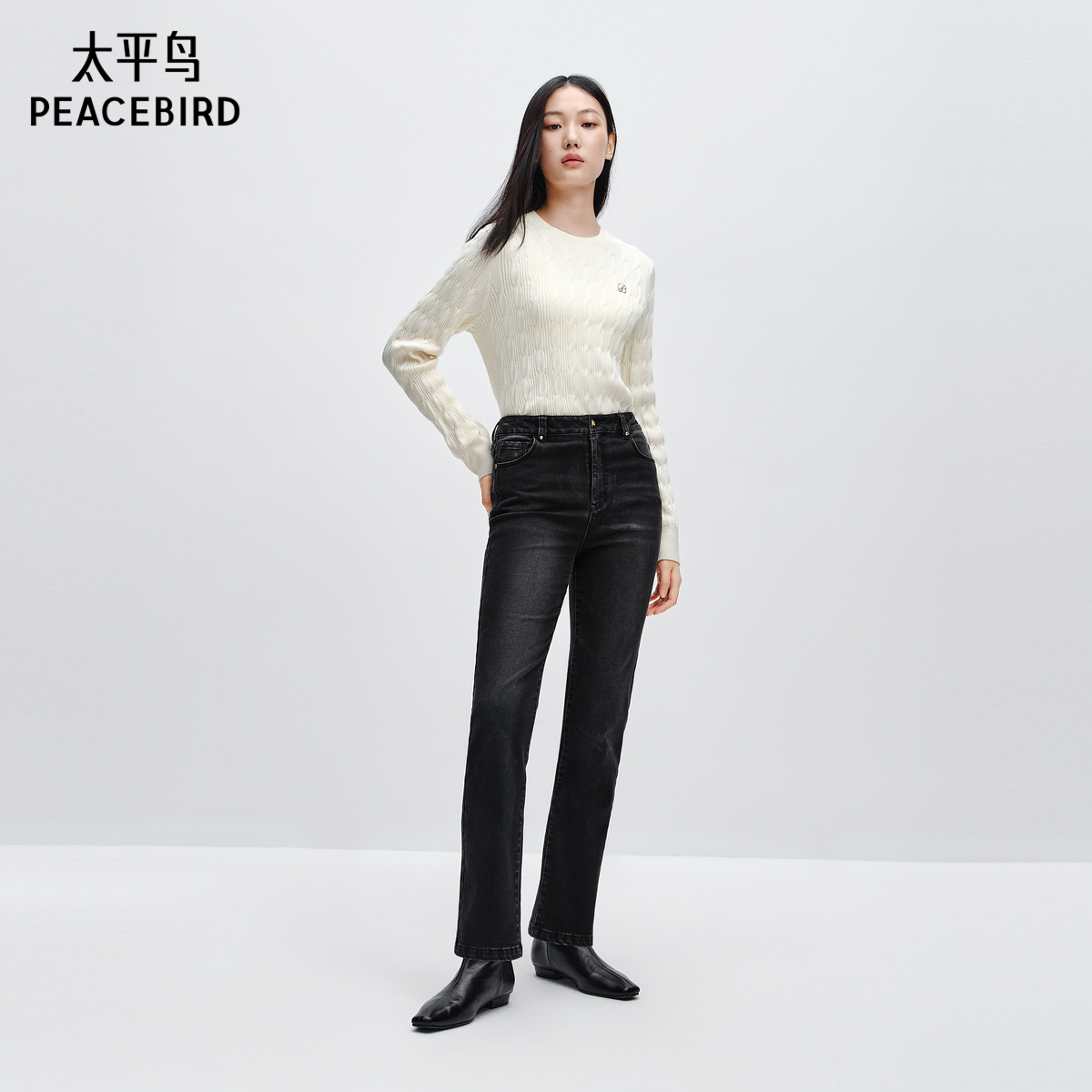 【来了就好】太平鸟高腰九分烟管牛仔裤温暖丹宁小直筒法棍