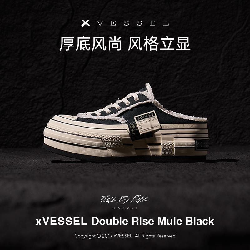 xVESSEL【陆虎同款】双侧标穆勒半拖内增高松糕帆布鞋拖鞋夏季
