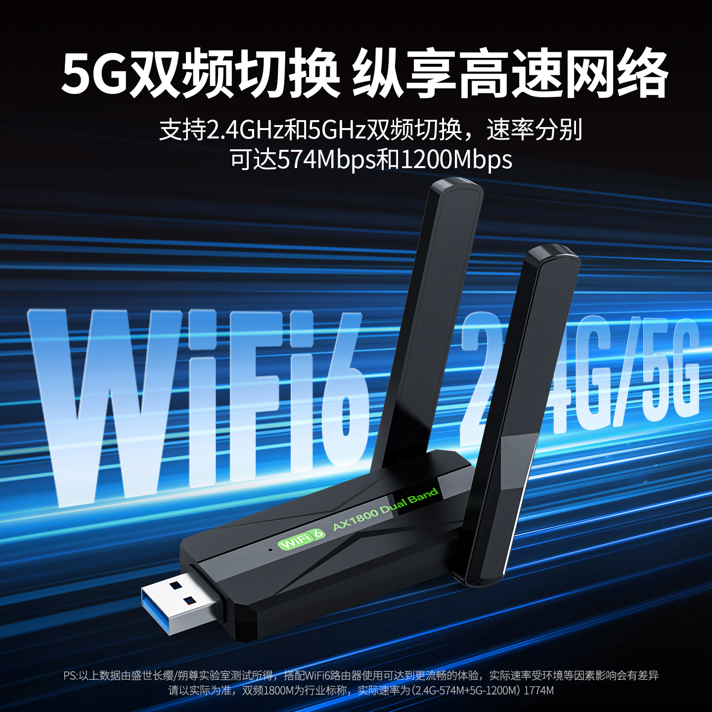 免驱动wifi6无线网卡5G双频千兆AX1800台式机笔记本电脑主机以太网电竞网络外置USB信号接收发射器链接热点