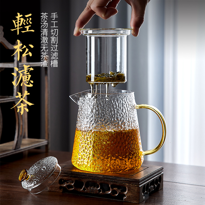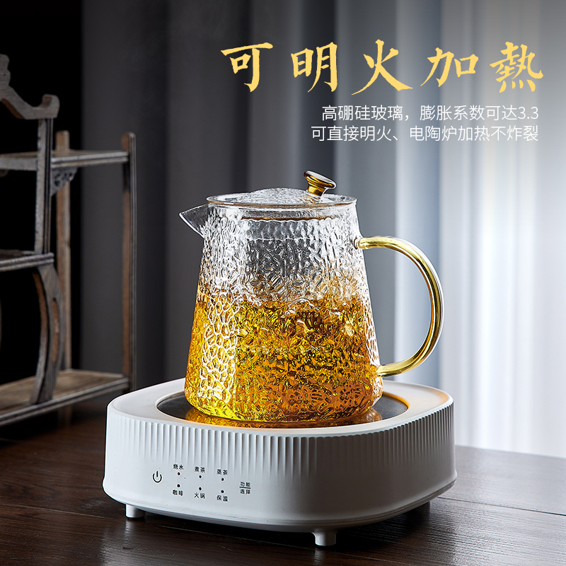 青苹果锤纹日式茶壶玻璃壶家用煮茶耐高温茶具套装加厚过滤泡茶壶