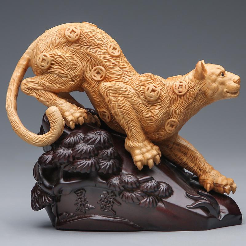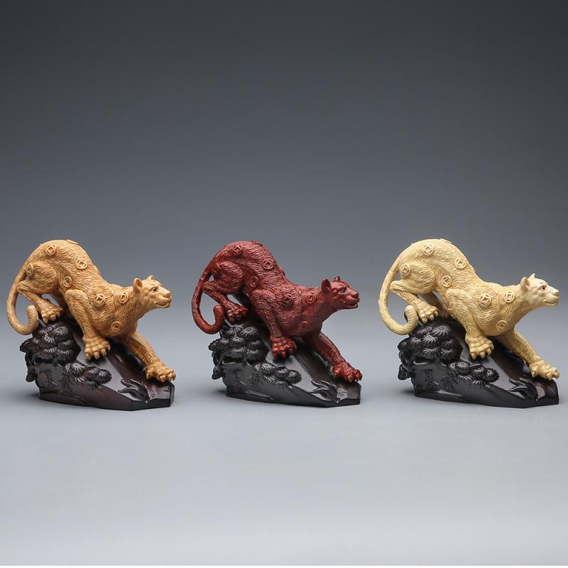 一路豹发暴1富金钱豹崖柏木雕血檀黄杨木摆件工艺居家开业送礼品