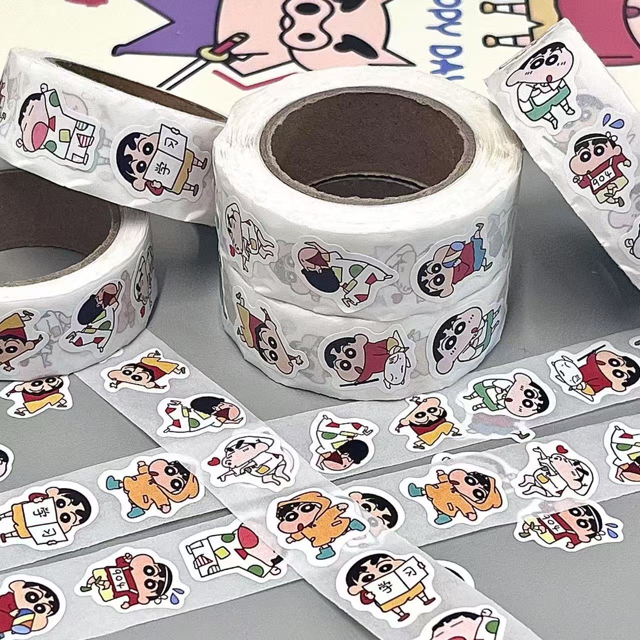 蜡笔小新卷卷贴纸ins高颜值卡通可爱胶带自粘手账装饰圆点封口贴