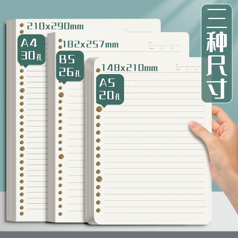 得力活页替芯b5a4a5活页替芯20孔26孔30孔活页本替换芯英语错题方格横线活页替换芯学生空白多用活页本可替换