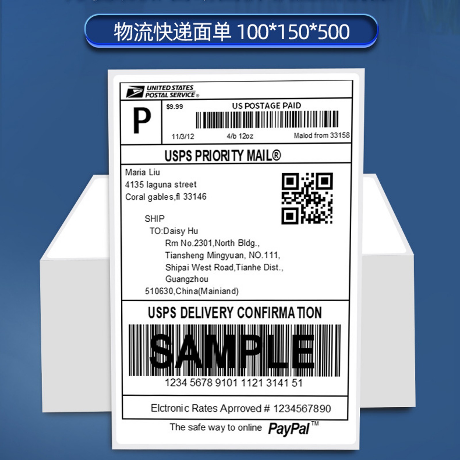 三防热敏标签纸100x100折叠100x150卷装打印纸100x100打印机专用整箱大尺寸不干胶条码高清外贸专用标签