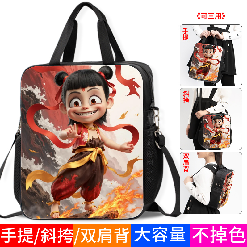 个性哪吒帆布印花补习袋魔童哪吒卡通多功能男女学生补课包2025爆火国漫电影周边小学生初中生ins网红款书袋