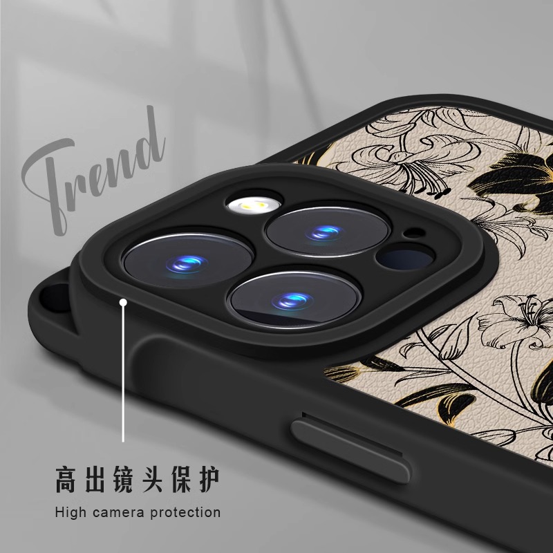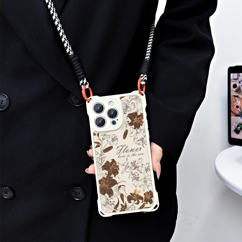 素描百合适用苹果16promax手机壳四角防摔iPhone15por保护套小羊皮14por斜跨长短挂绳13pm小众复古12女款11潮